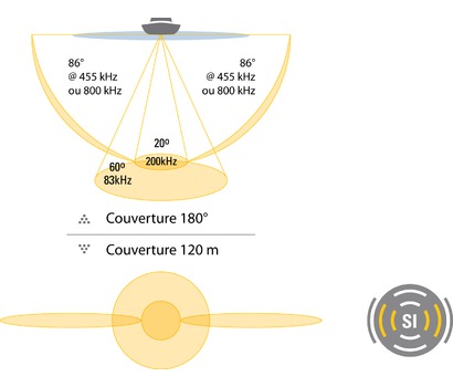 Le principe est le suivant : deux faisceaux latéraux balaient sur les côtés, avec une portée théorique de 110 m chacun. Contrairement aux faisceaux classiques qui sont coniques, ceux-là sont très minces dans leur dimension horizontale, mais très large dans leur dimension verticale.